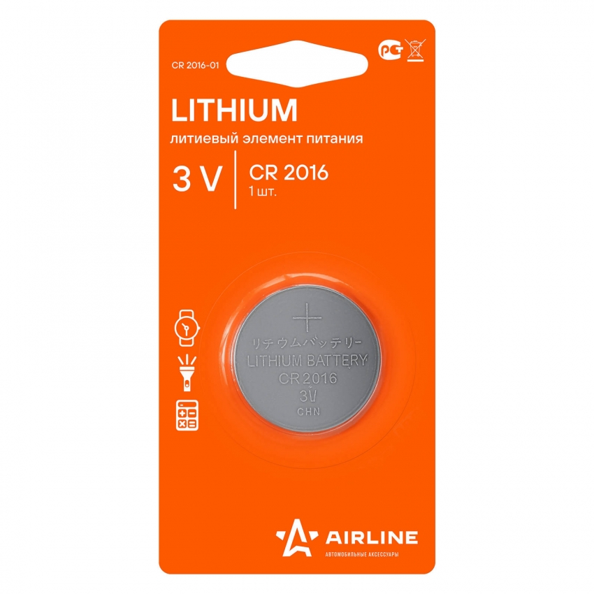 Батарейка CR2016 3V для брелоков сигнализаций литиевая 1 шт.