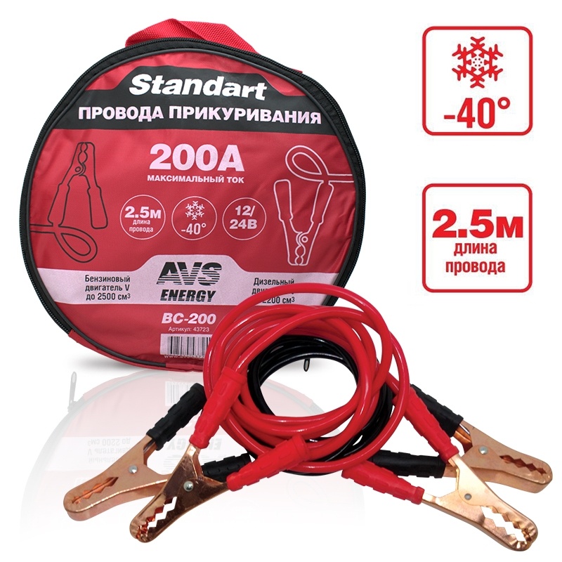 Провода прикуривания AVS "BC-200" предназначены для пуска двигателя автомобиля с разряженной аккумуляторной батареей от аккумулятора другого автомобиля.